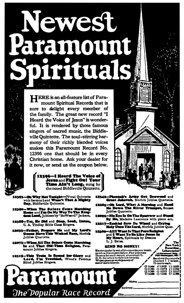 Vocal groups, 1930s to 1950s; Decca label Rhythm & Blues, 1949 and 1950; Austin scene 1980s – R&B & Blues; Blues from Nashville labels; live gospel performances.